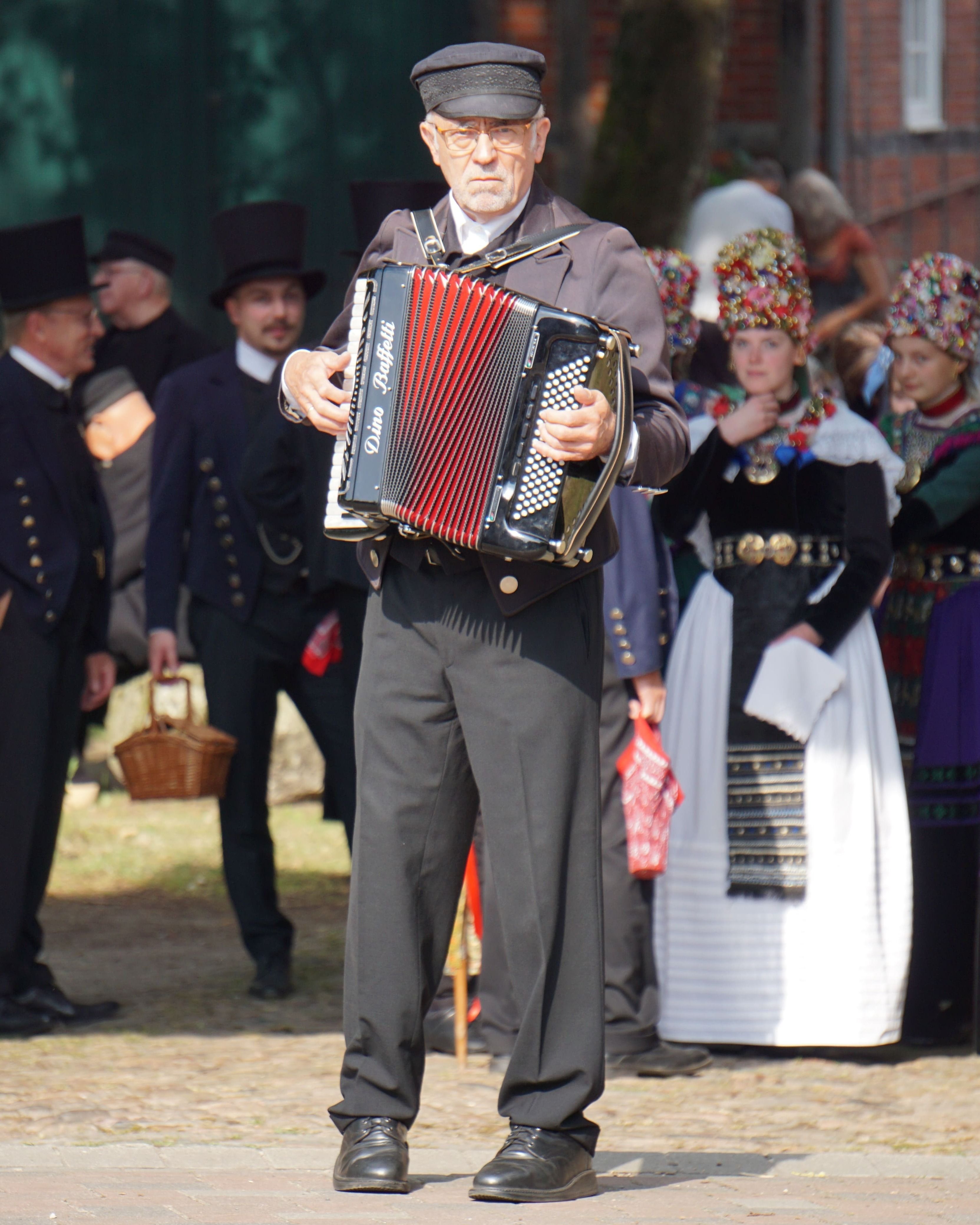 Die Original Scheeßeler Trachtengruppe tritt bei ihren Darbietungen als traditioneller Brautzug auf. Dazu gehören der Hochzeitsbitter, das Brautpaar mit Elternpaaren, Tänzerinnen und Tänzer in Festtags- und Sonntagstracht, Jungen und Mädchen der Kindertanzgruppe und Musiker für die Live-Musik.